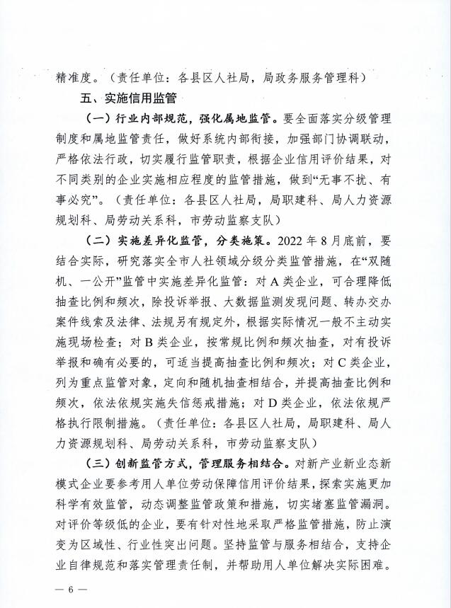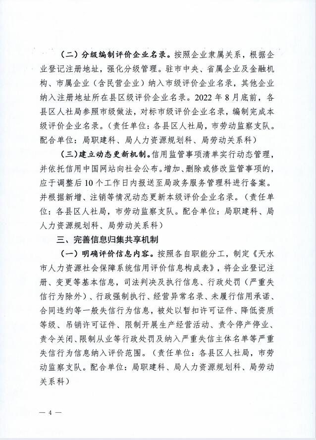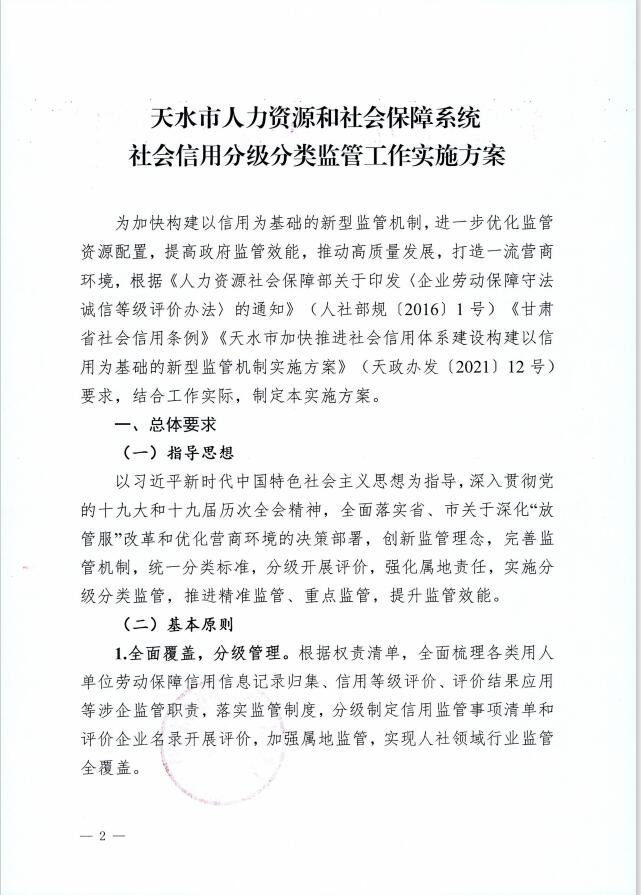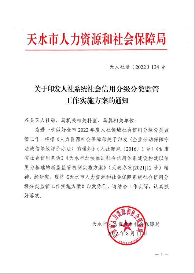 天水市人社局行业信用分级分类监管制度