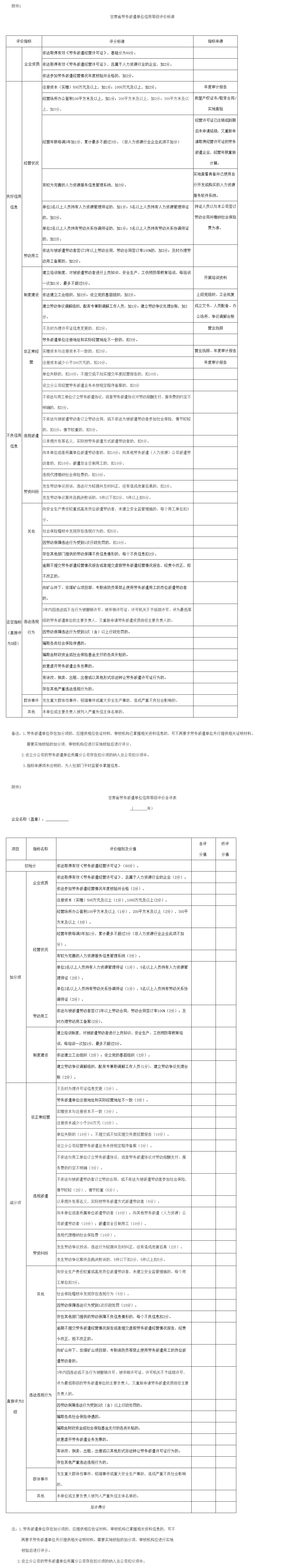 附件:1.甘肃省劳务派遣单位信用等级评价标准