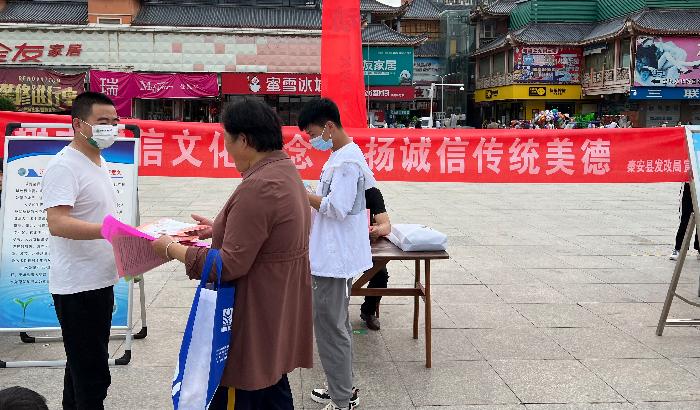 为加快推进社会信用体系建设,在全社会倡导诚信道德规范,弘扬社会主义核心价值观,共同营造推进社会信用体系建设的良好氛围,2022年6月2日,县发改局在兴国文化广场开展了以“树立诚信文化理念,弘扬诚信传统美德”为主题的社会信用体系建设宣传活动。