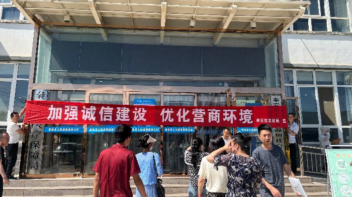 为加快推进社会信用体系建设,在全社会倡导诚信道德规范,弘扬社会主义核心价值观,共同营造推进社会信用体系建设的良好氛围,2022年6月24日,县发改局在县政务服务中心开展了以“加强诚信建设,优化营商环境”为主题的社会信用体系建设宣传活动。
