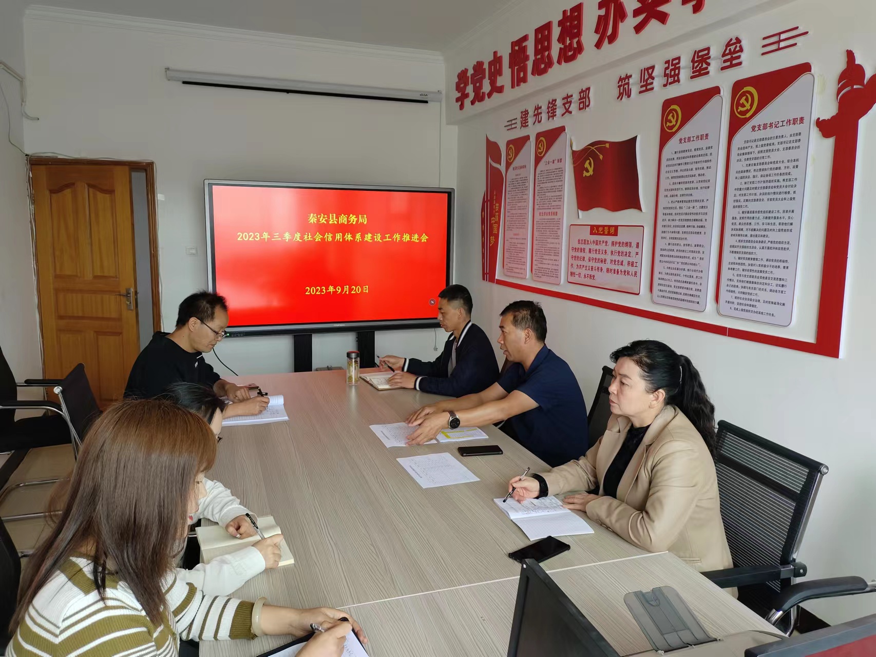 2023年9月20日,秦安县商务局召开第三季度社会信用体系建设工作推进会,局领导和各股室工作人员参加会议。