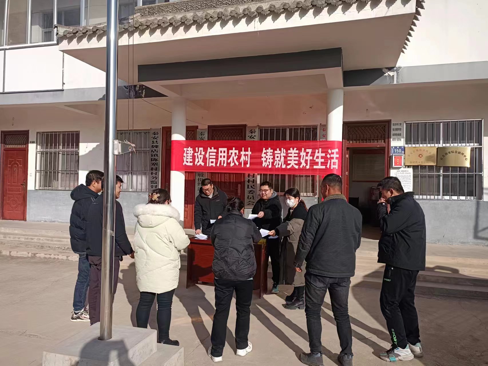 现场,传达学习了《关于推进社会信用体系建设高质量发展促进形成新发展格局的意见》,张贴了宣传标语,发放了《甘肃省社会信用条例》宣传手册,并对“甘肃信易贷平台”小程序操作流程进行了培训,通过走访入户、微信、QQ等方式开展《甘肃省社会信用条例》宣传和“信易贷”平台推广活动,多元化开展社会信用宣传,营造良好的社会信用氛围,推动我镇社会信用体系建设工作再上新台阶。陈寨村包村领导刘林林强调,要准确把握社会信用体系建设的内涵和要求,加快推行信用承诺制度,建立信用承诺问效机制,健全完善信用档案,大力推进信用分级分类监管,使监管力量“好钢用在刀刃上”,从而让守信者降成本、减压力,让失信者付代价、增压力。