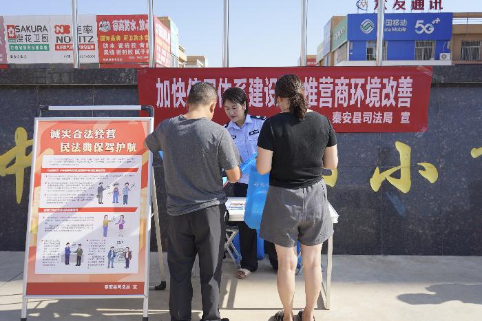 为进一步加强社会信用体系建设,引导社会主体自觉参与到信用体系建设中来,大力营造“人人讲诚信,人人重诚信”的社会风尚。8月13日,秦安县司法局在西川镇西部小商品城开展社会信用体系建设宣传活动。