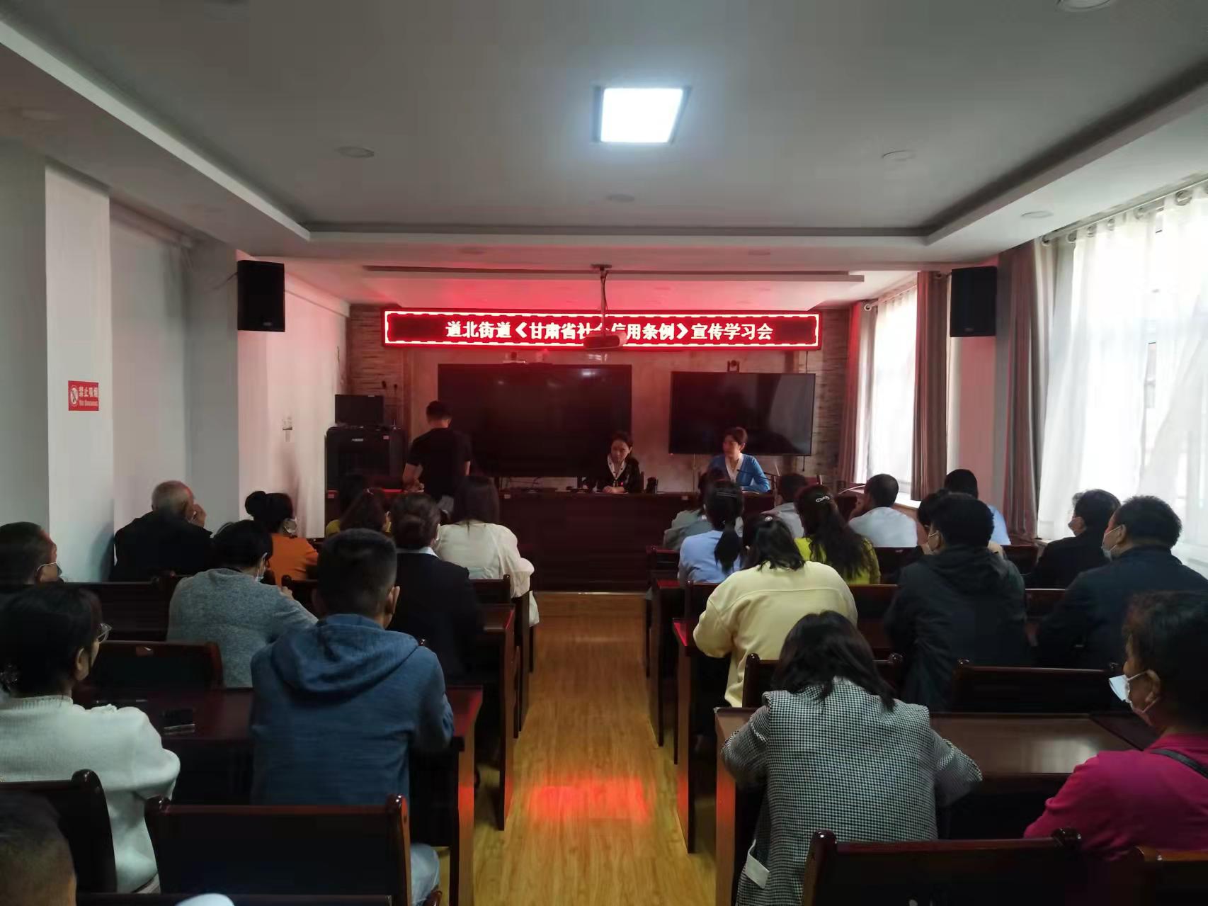 活动期间,道北街道组织道北执法中队、道北派出所、道北市场监管所等多个单位工作人员组成宣传小分队,走进企业、机关、学校、社区、农村、门店,采取讲座、座谈、面对面宣传等多种方式宣传社会信用的重要性。同时,通过悬挂宣传横幅、制作宣传海报、印制宣传单页等方式,广泛宣传《甘肃省社会信用条例》、《全国失信惩戒措施基础清单(2021年版)》以及安全生产、消防安全、食品安全、诚信经营和金融征信等多个领域的信用体系建设内容,在辖区范围内营造了诚实守信、遵纪守法的良好社会氛围。