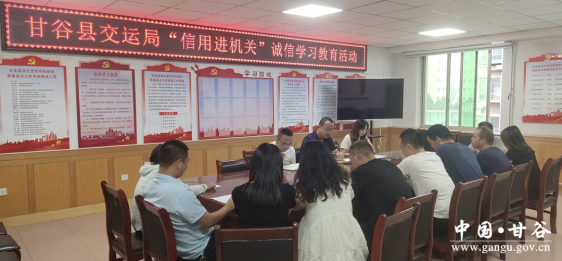 为全面推进社会信用体系建设工作,提升交通运输行业信用建设水平,助推我县文明城市创建工作。8月17日,甘谷县交通运输局组织召开了2022年“信用进机关”诚信学习宣传教育活动,会议由县交通运输事务服务中心主任张之龙主持,县交通运输局局属各单位、机关各股室负责人参加了会议。