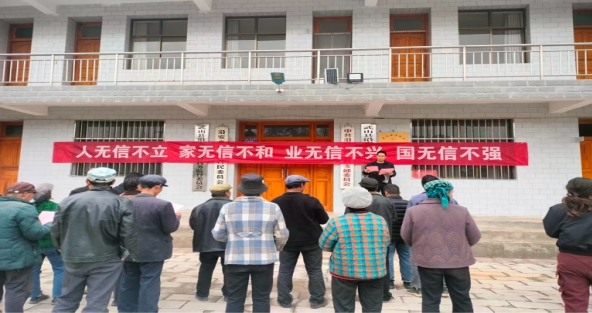 活动现场,红色横幅“人无信不立 家无信不和 业无信不兴 国无信不强”格外醒目。工作人员面向村民宣讲诚信在个人成长、家庭和谐、产业发展及国家建设中的重要意义,用通俗易懂的语言解读诚信内涵,引导村民树立诚信意识。村民们或驻足聆听,或翻阅宣传资料,积极参与其中,现场氛围热烈。