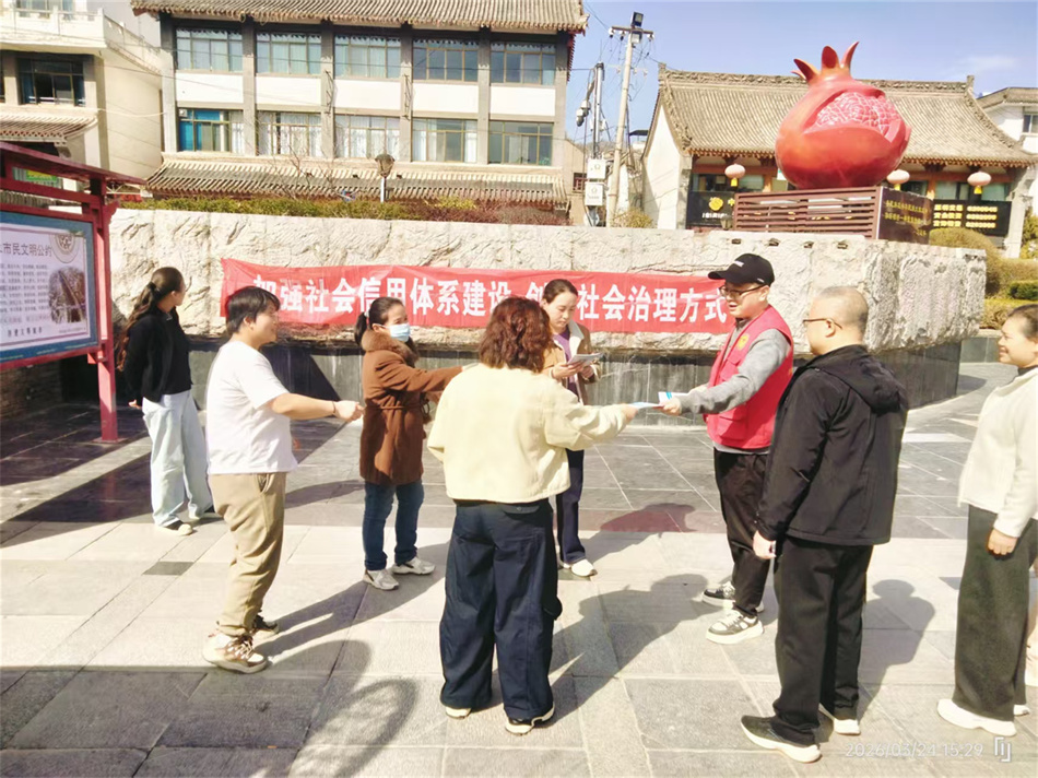 秦州区融媒体中心3月25日讯 近日,伊民巷社区新时代文明实践站组织志愿者开展社会信用体系建设宣传活动。