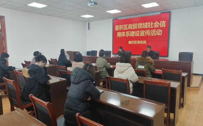 为积极推进麦积区商贸领域社会信用体系建设,让商贸流通企业更多的了解社会信用体系建设及相关政策,引导企业诚信经营,增强企业诚信意识,营造全社会”“知信用、守信用、用信用”的良好氛围。12月28日,麦积区商务局组织全区限上商贸企业开展了商贸领域社会信用体系建设宣传活动。