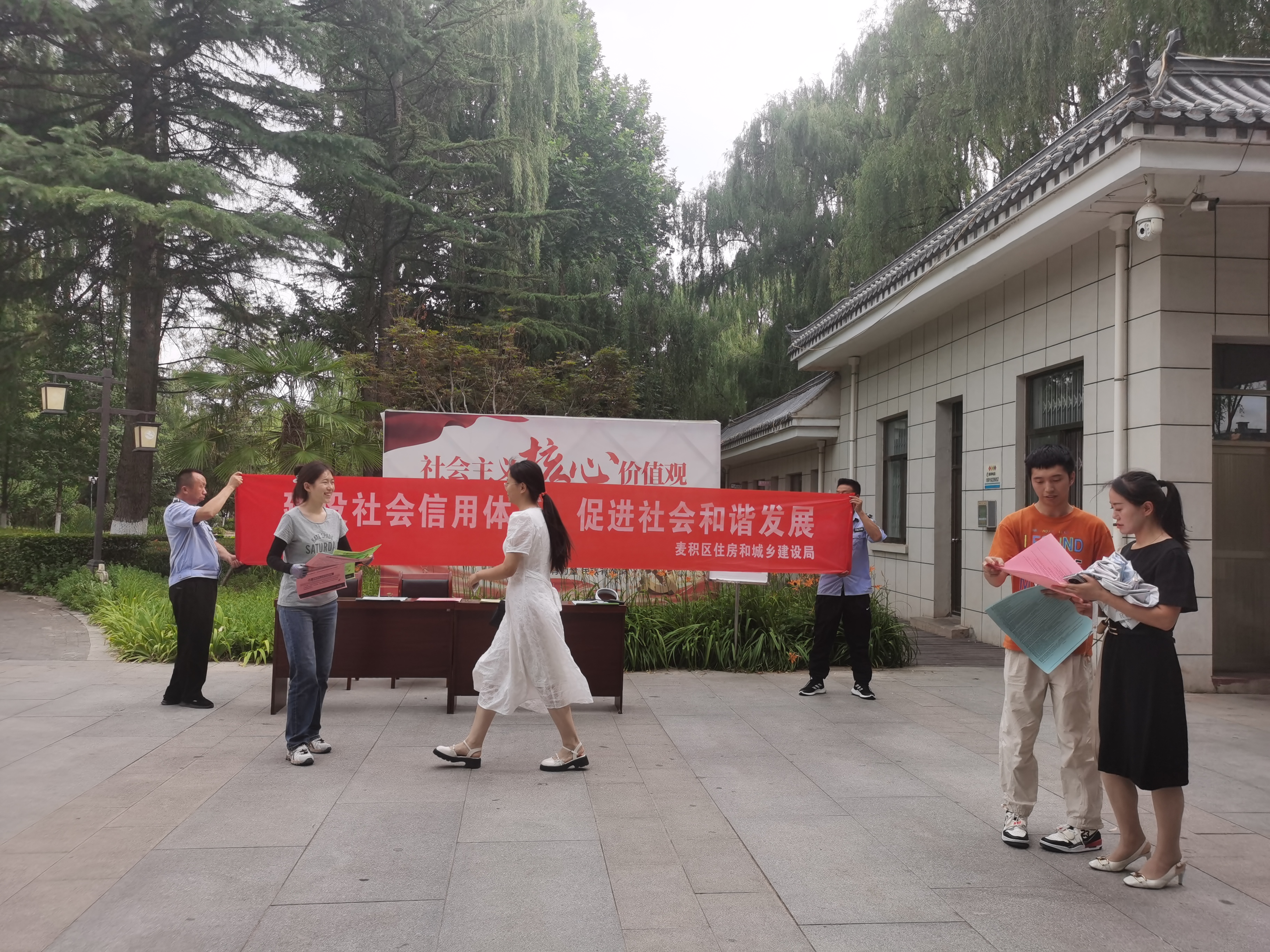 为进一步提高全民的诚信意识和信用水平,营造良好的社会发展环境,推动社会信用体系建设,引导企业切实履行主体责任,共同营造“知诚信、讲信用、促文明”的良好信用环境,2024年8月16日麦积区住建局组织干部职工在麦积区马跑泉公园开展了社会信用体系建设宣传活动。