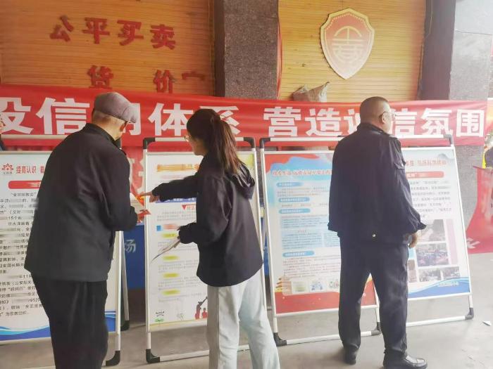 为进一步提高村民的诚信意识,营造全民诚信良好氛围,近日,我镇组织工作人员于渭南镇农贸市场开展以“建设信用体系,营造诚信氛围”为主题的宣传活动。