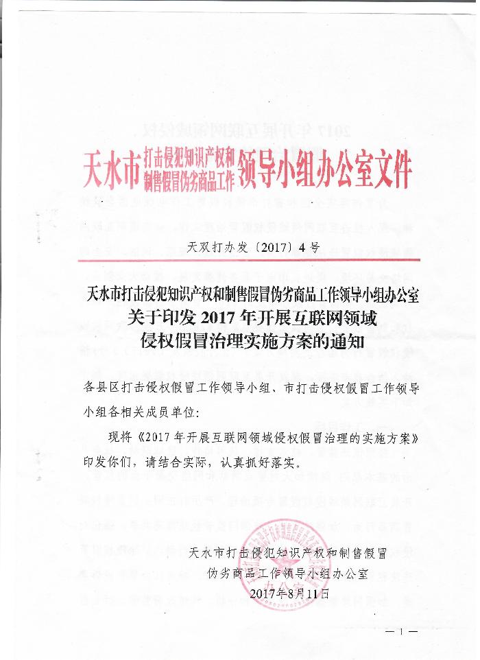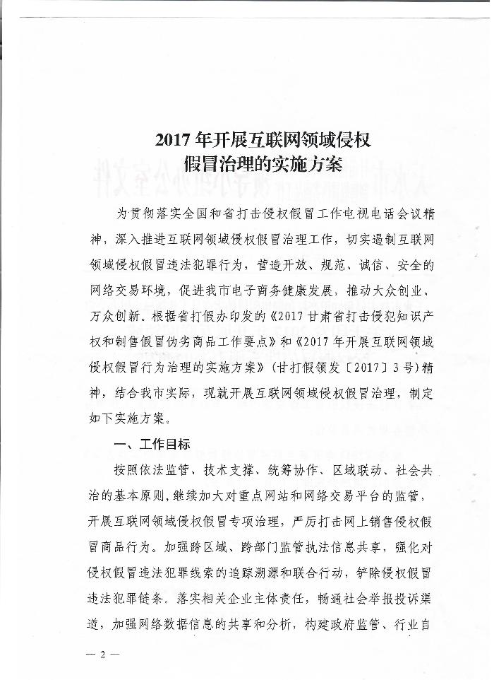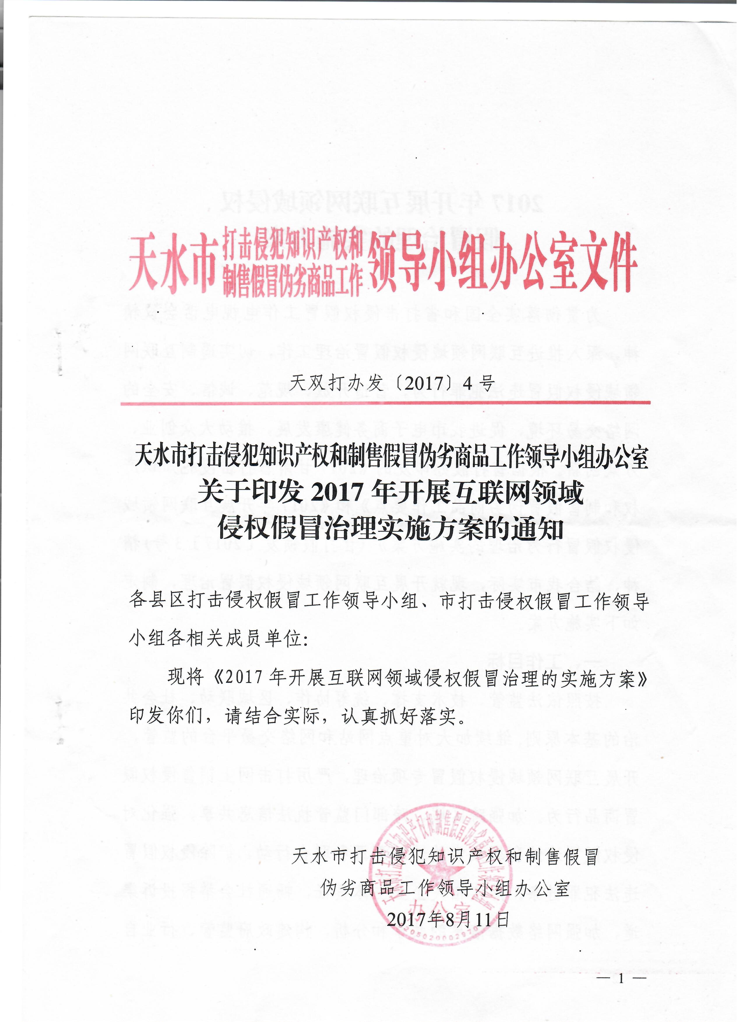 关于印发2017年开展互联网领域侵权假冒治理实施方案的通知