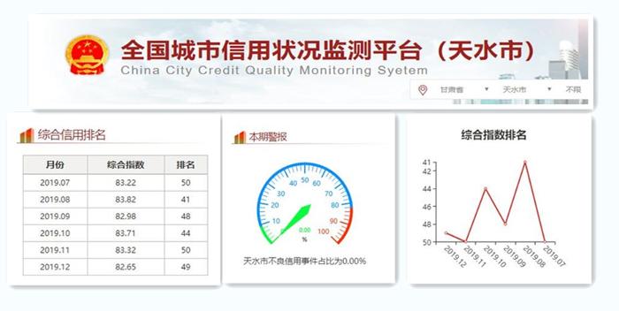甘肃省在社会信用体系建设总体规划与统筹设计中,要求以大数据、云计算等现代信息技术为手段,搭建覆盖全社会的信用信息共享交换平台。甘肃省天水市信用信息共享平台自2018年由浪潮承建起,逐步实现天水市城市信用监测排名的稳步提升,改善经济社会运行环境,提高全社会诚信意识和信用水平,推动“信用天水”、“诚信甘肃”建设迈上新台阶。