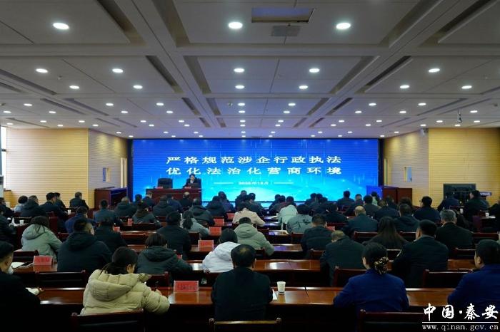 会议强调,要提高政治站位,强化思想认识。深刻认识开展规范涉企行政执法专项行动的重要意义,从源头上减少对企业生产经营的不当干扰,切实增强市场主体的发展信心,着力营造稳定可预期、公平可信赖、透明可监督的法治化营商环境。要强化责任担当,打造严格公正法治环境。各行政执法部门要主动担当作为、密切协作配合,以优质的法治观念,行之有效的法治措施,促进良好法治化营商环境形成,增强企业法治获得感、幸福感、安全感。要聚焦工作重点,健全规范执法长效机制。聚焦企业和群众反映强烈的重点问题,多措并举、精准发力,坚决整治随意检查、多头执法等顽瘴痼疾,健全长效机制,全面提升规范涉企行政执法专项行动工作成效,全力推动秦安法治政府建设迈上新台阶。