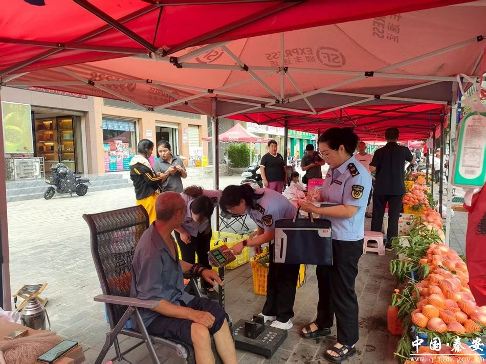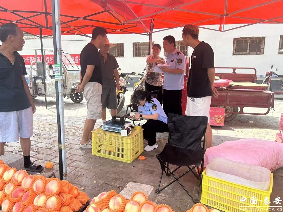 七月流火,秦安大地果香弥漫。随着“中国桃之乡”——秦安县的万亩蜜桃进入采摘高峰,果品交易市场迎来一年中最繁忙的时节。为保障蜜桃产业健康发展,秦安县市场监管局以精准计量服务为切入点,对县域内蜜桃交易市场开展计量器具专项检查行动,以公正之“秤”守护桃乡的“甜蜜产业”高质量发展。
