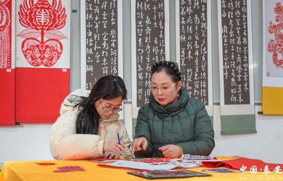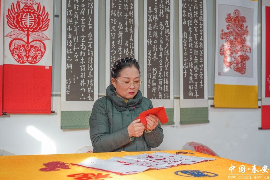 红纸翻飞,剪刀起落,纸屑如落英簌簌,转瞬之间,一幅灵动的福字便跃然纸上。秦安剪纸市级非物质文化遗产传承人安梅霞,从业三十余载,她从乡间剪纸爱好者成长为非遗传承人,用一把剪刀、一张彩纸,守住秦安剪纸的根脉,也为非遗传承开辟出新路径。