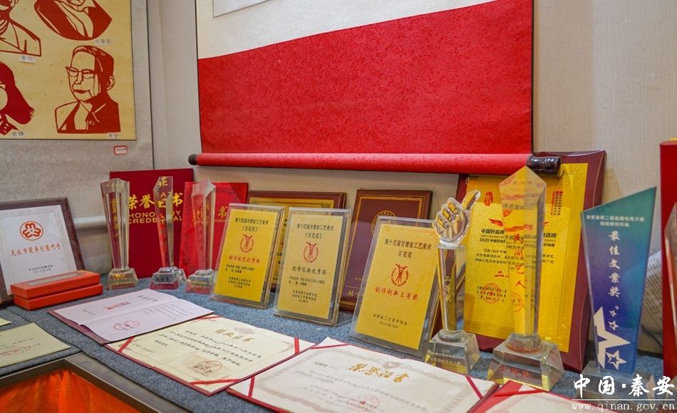 为精进技艺,安梅霞从未停下求学的脚步。2005年起,她先后奔赴延安、庆阳、河北衡水、西安等地,拜访剪纸名家,系统学习北派剪纸技法,融合秦安本土剪纸古朴大气、线条简练的特色,形成了传统为根、创新为魂的个人风格。她的作品题材横跨民俗吉祥、大地湾文化、女娲传说、红色历史、时代主题等领域,既有 11 米长卷《女娲故事》《大地湾彩陶人首瓶》等承载地域文脉的精品,也有《解放秦安》《扶贫第一线》《福佑苍生》等紧扣时代的力作,其中《福佑苍生》斩获甘肃省第十届 “百花奖” 一等奖,《解放秦安》获同届三等奖,多幅作品入选全国非遗博览会,成为秦安剪纸对外展示的名片。
