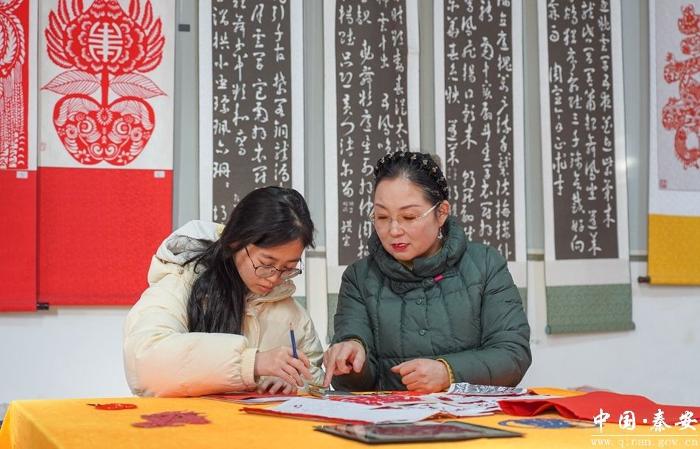 2015年,安梅霞辞去幼儿园教师的稳定工作,创办秦安县耘春堂梅霞剪纸艺术有限公司,搭建起集创作、培训、销售于一体的非遗传承平台。她牵头成立巾帼扶贫车间,带动当地妇女学习剪纸技艺,让传统手艺成为增收门路。同时受聘于秦安县桥南中学、第四小学等多所学校,担任剪纸社团授课教师,每周走进课堂为孩子们讲授剪纸历史、折叠技法与创作思路,用趣味教学点燃青少年的非遗热情。