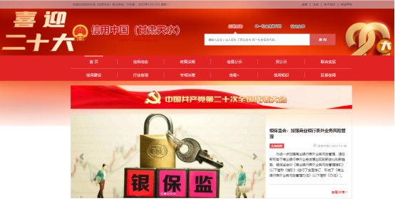 “信用天水”官方网站是“信用中国”官方网站的重要组成部分,是天水市开展社会信用体系建设的唯一官方网站。既是展现我市信用建设成果的窗口,更是面向社会提供信用服务的名片,网站提供信用公示、信息查询、双公示、联合惩戒、信用承诺、信用修复等多个模块,按不同数据权限为全市的机关事业单位、企业法人、社团组织和自然人提供信用信息查询、浏览、统计、管理等服务