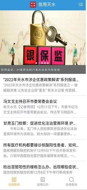 二、通过下载“信用天水”APP查询,可通过扫码“信用网站”右侧边框二维码下载“信用天水”手机版APP,在信用查询栏查询企业信用信息(图二)。
