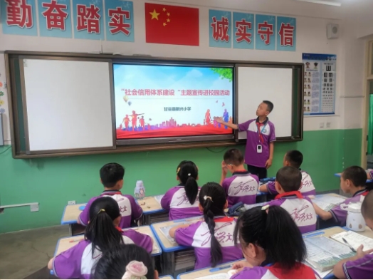 为了弘扬中华传统美德,培养学生良好的学习和生活习惯,增强学生的诚实守信的意识,教育引导学生诚实做人,树立正确的世界观、人生观、价值观,成为有理想、有道德、有文化、有纪律的一代新人,甘谷县新兴小学开展了“社会信用体系建设”主题宣传进校园活动。