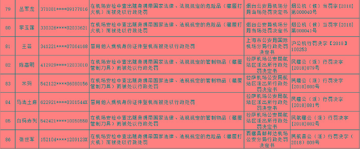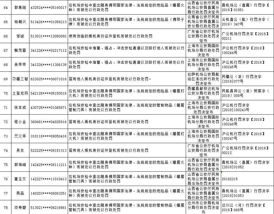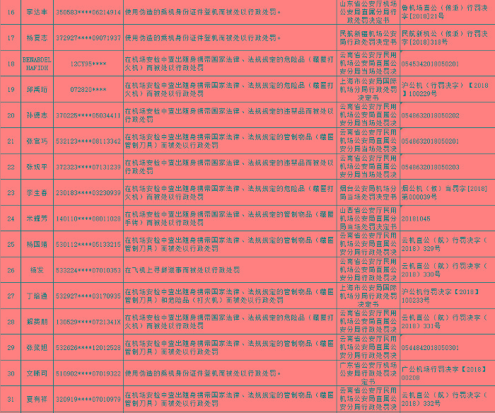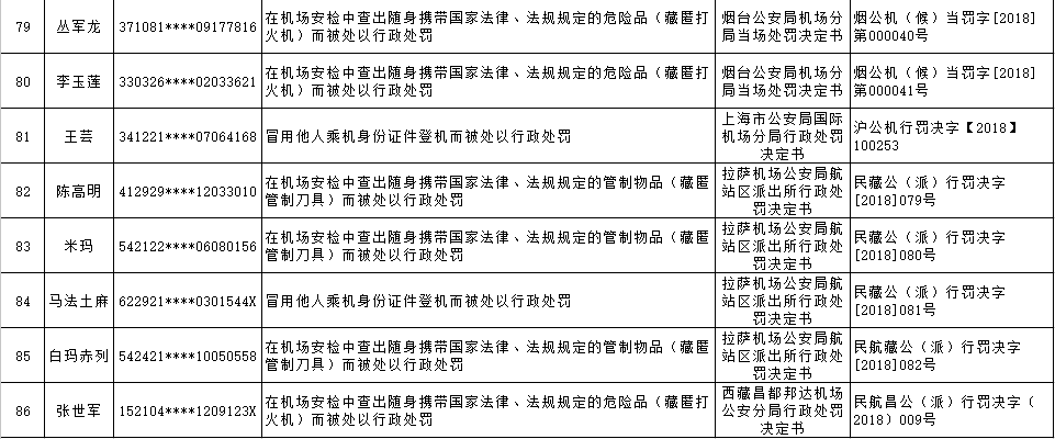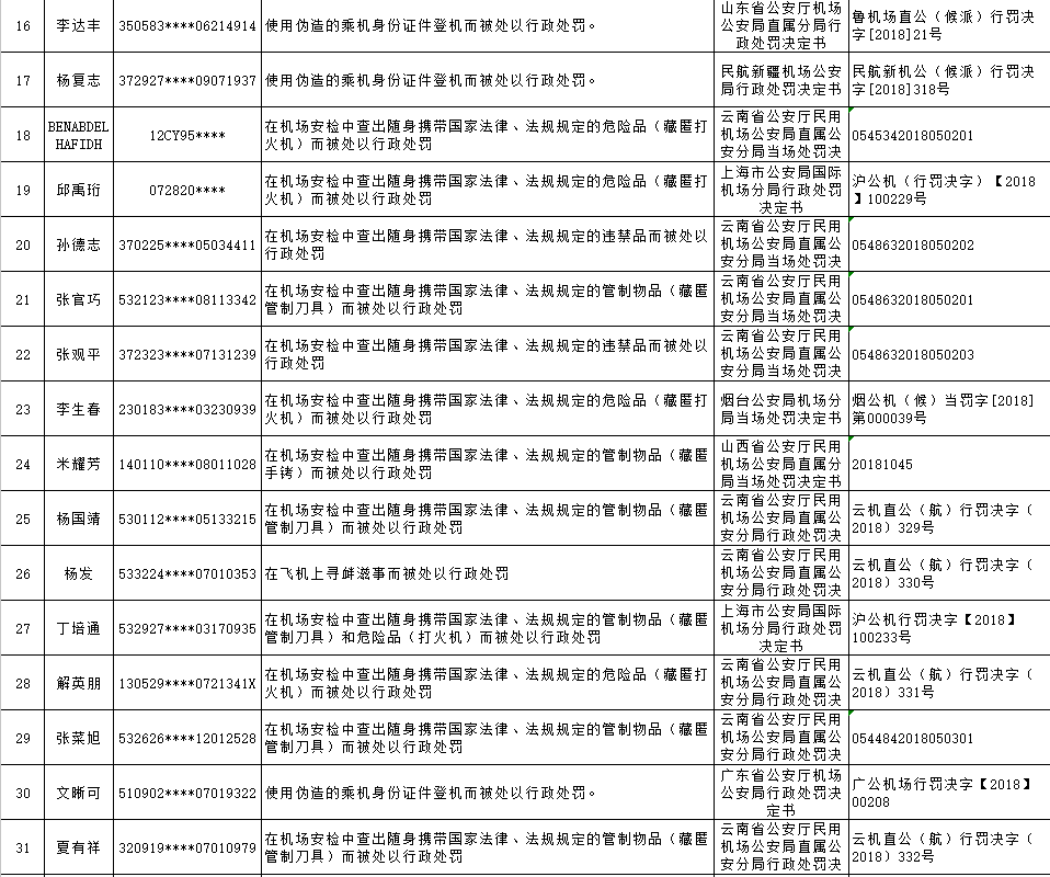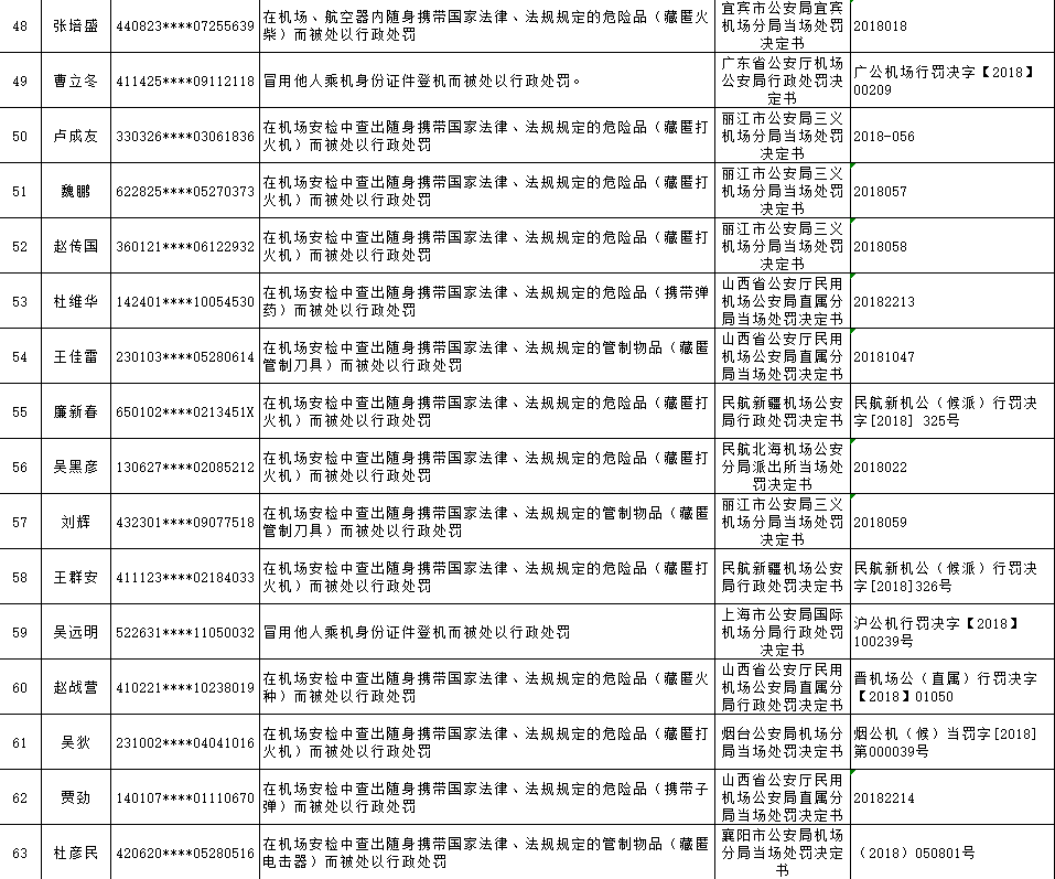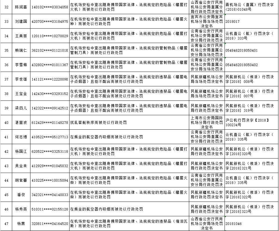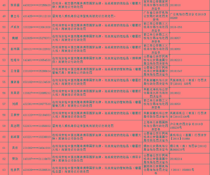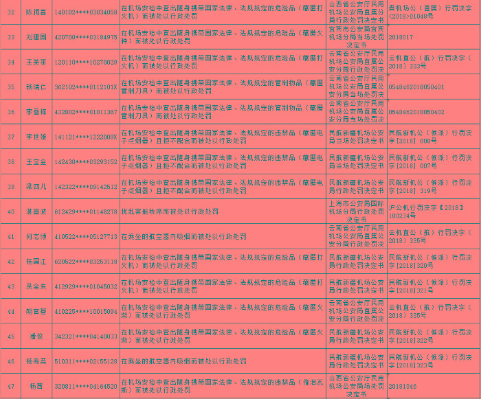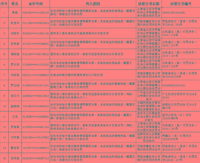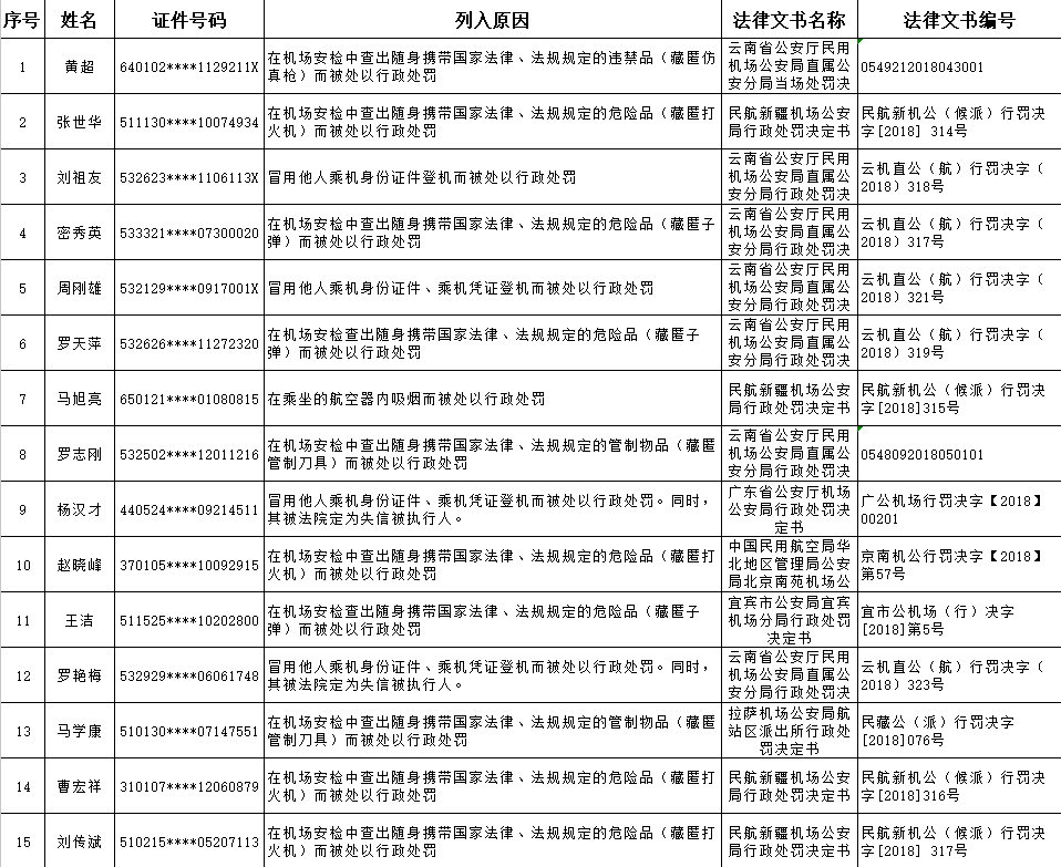 以下为民航限制乘坐民用航空器严重失信人名单: