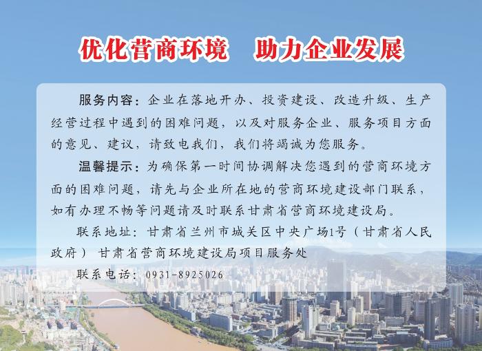 甘肃省营商环境建设部门暖心服务卡