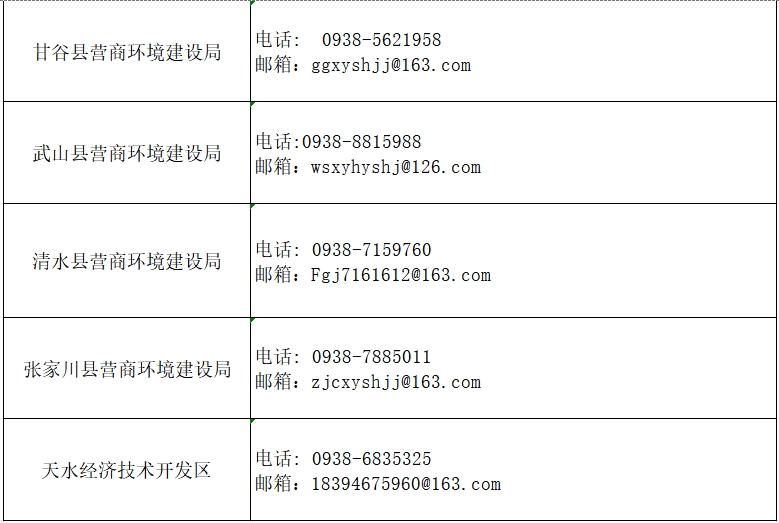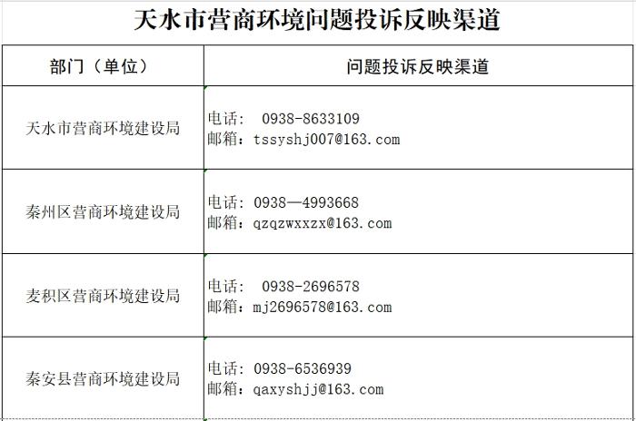 天水市营商环境问题投诉反映渠道