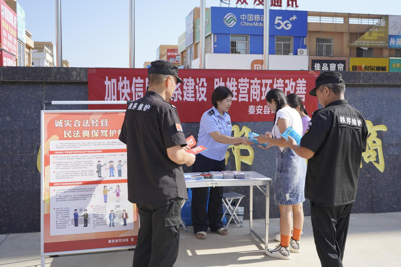 为进一步加强社会信用体系建设,引导社会主体自觉参与到信用体系建设中来,大力营造“人人讲诚信,人人重诚信”的社会风尚。8月13日,秦安县司法局在西川镇西部小商品城开展社会信用体系建设宣传活动。