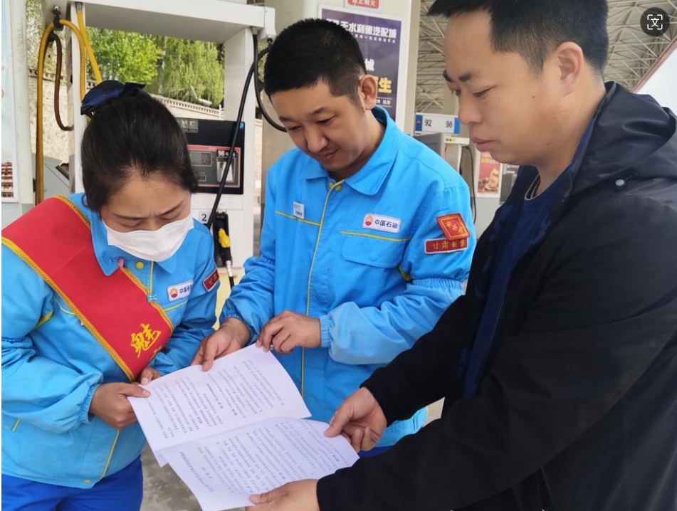 在城关加油站、胡川加油站重点对加油站等经营场所的工作人员进行案例宣传教育,耐心解答工作人员在经营过程中产生的困惑;在张家川油库,要求生产企业负责人结合信用体系建设,落实以单位主要负责人为第一责任人的安全诚信责任体系,落实全员安全承诺制度,全面落实企业安全生产主体责任,严格遵守安全生产法律法规、规章标准,严格守信合法经营。