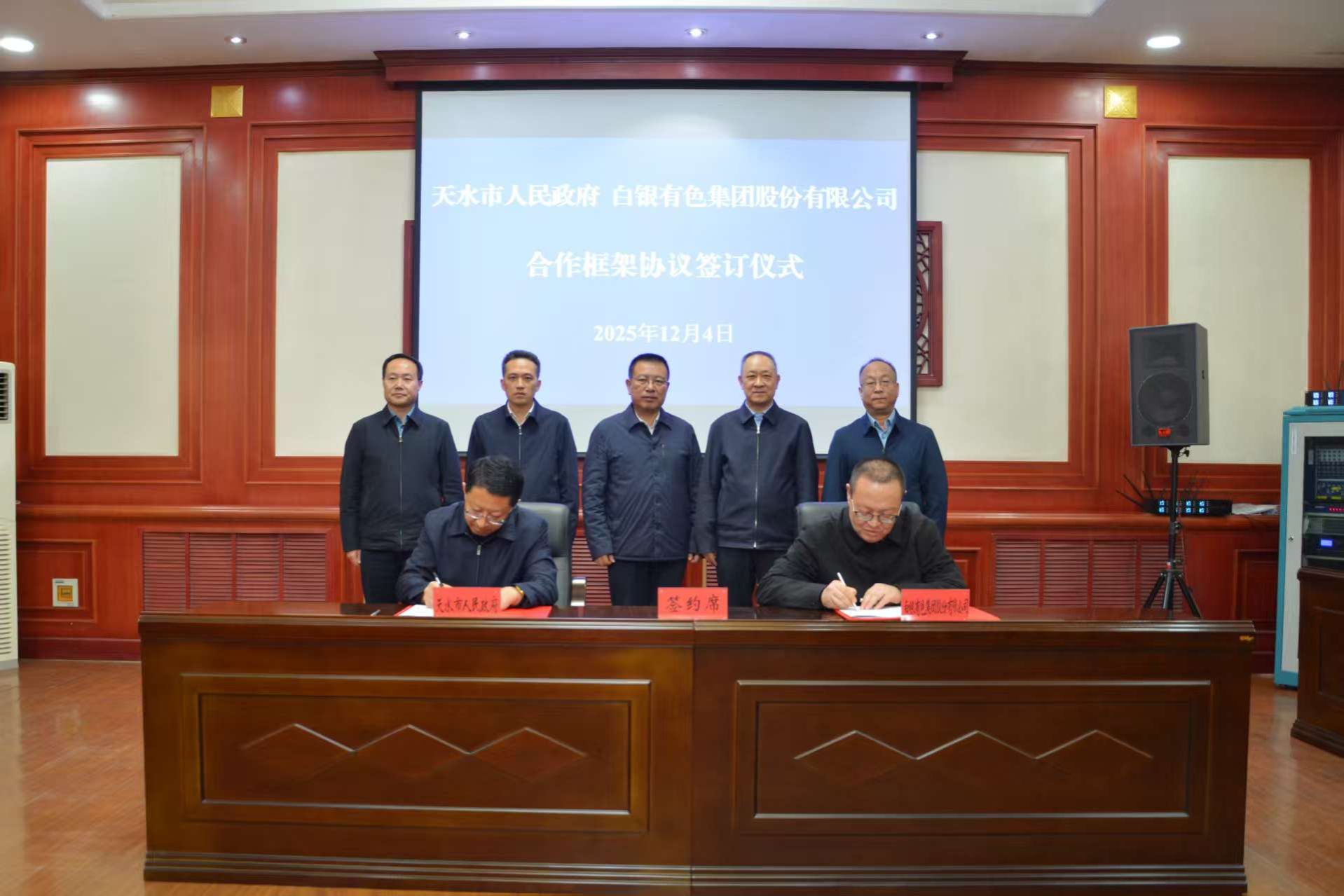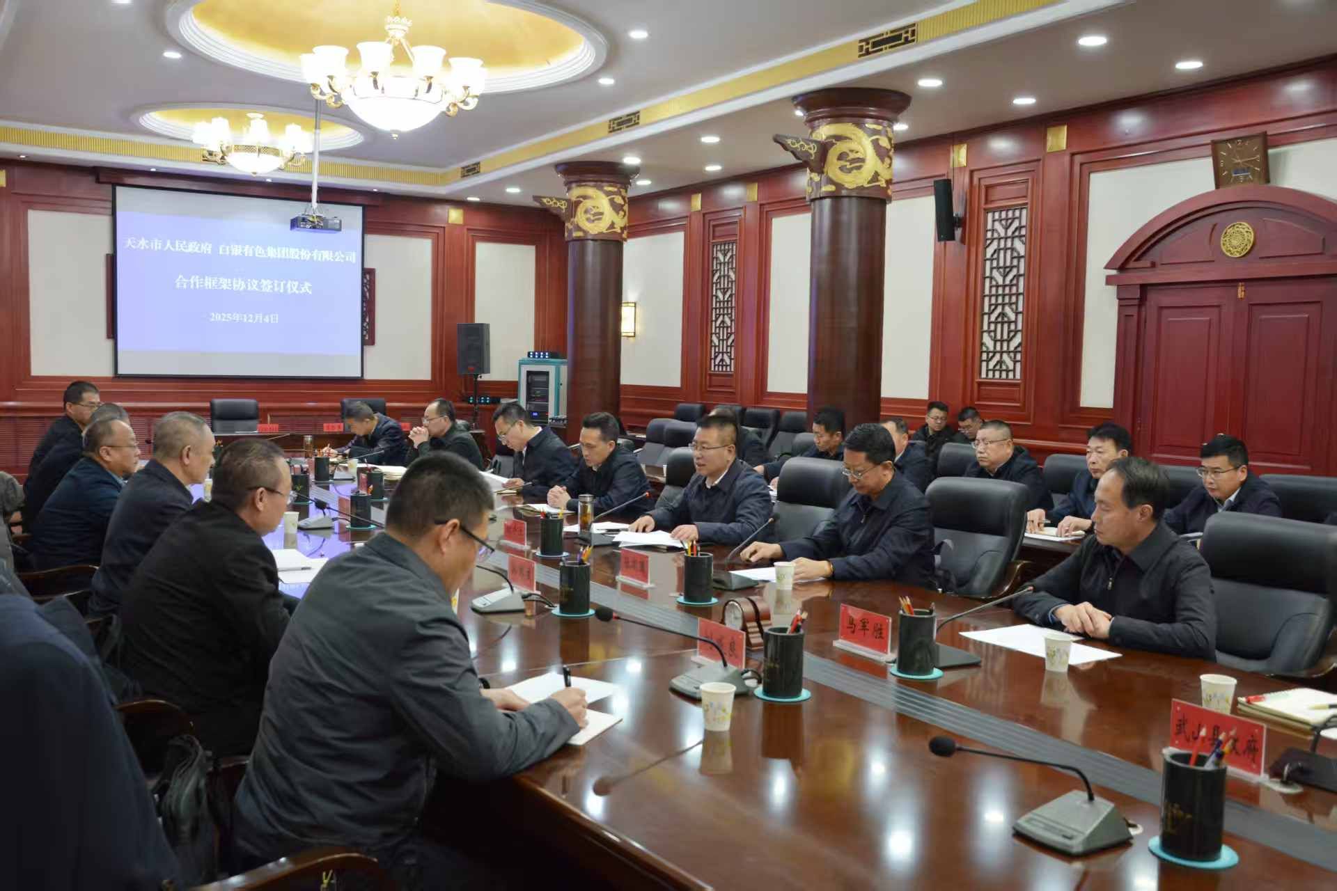 12月4日,天水市政府与白银有色集团股份有限公司签署合作框架协议。