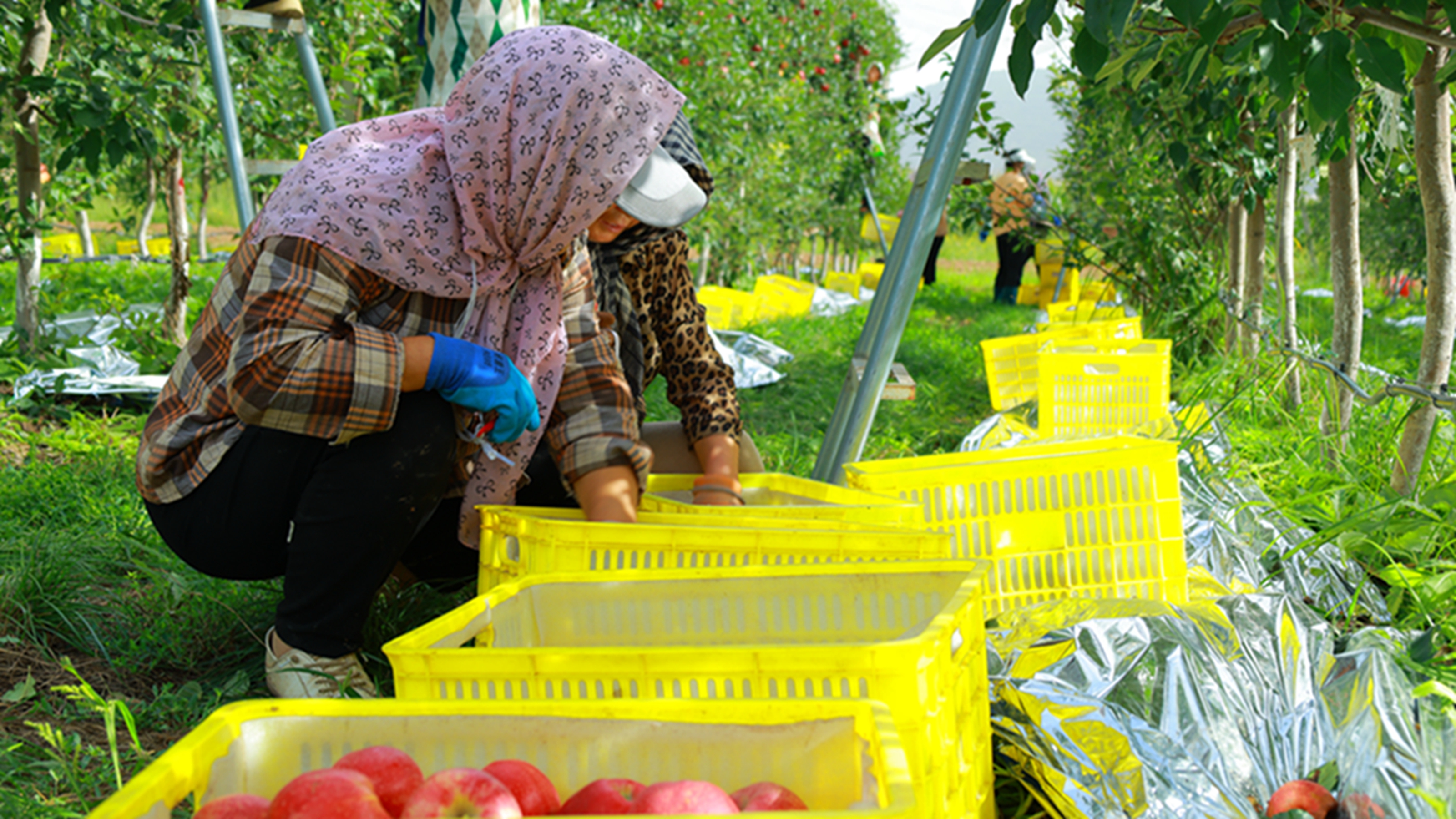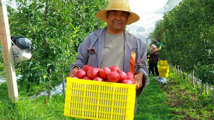 “一年四季有活做,锄草的时候锄一下草、刷果树,摘苹果的时候又能摘苹果、包装苹果。既能管孩子,又能在附近挣些零花钱。”兰沟村村民薛月芳看着满筐的苹果,脸上洋溢着喜悦。