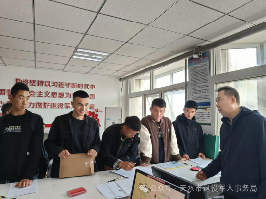 活动中,秦州区退役军人事务局负责人以窗口工作人员身份,热情接待了前来办事的自主就业退役士兵,从开具介绍信,到解读就业创业政策,再到办理社保卡,全流程为退役士兵服务,并与他们亲切交流,倾听他们的想法和建议。随后,他又以陪同办理的方式,切身体验业务流程,向窗口工作人员进行政策咨询,了解自主就业退役士兵申请免费技能培训从资料提交到审核办理,再到后续服务跟进的全过程,着力从退役军人角度出发,细致入微地检验工作人员办理流程是否便捷、高效。 关于退役军人在退役报到、优待政策、就业扶持等方面存在的问题,仔细聆听工作人员的解答,及时与工作人员交流讨论,形成“走流程”问题清单,着力推动流程再造,持续提升服务效能,切实营造规范高效便捷的政务服务环境,高效帮助退役士兵全面了解当前就业形势,更好地适应新环境、转变新身份、实现新作为、作出新贡献。