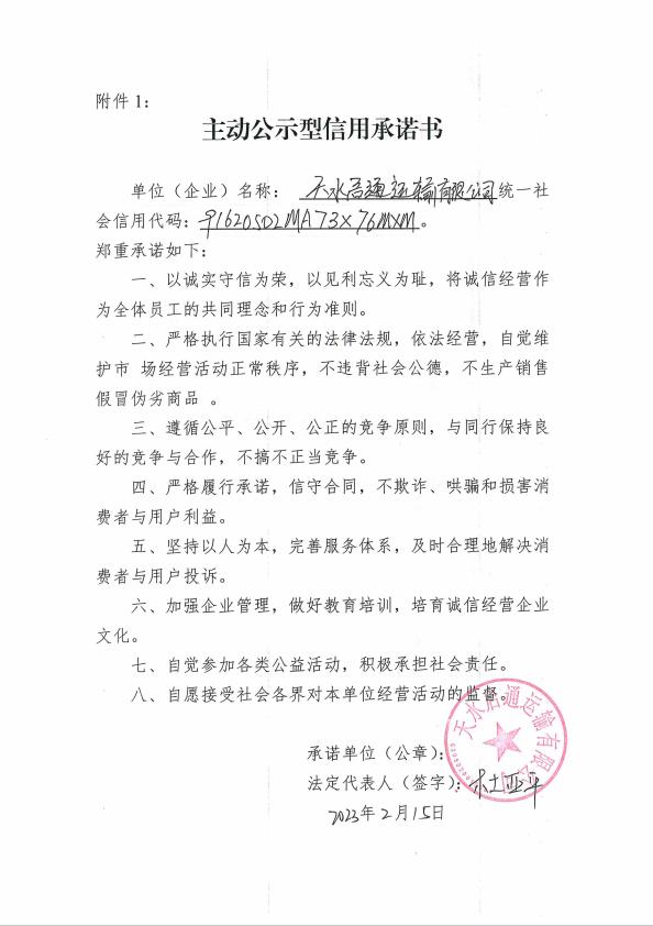 天水市企业承诺书