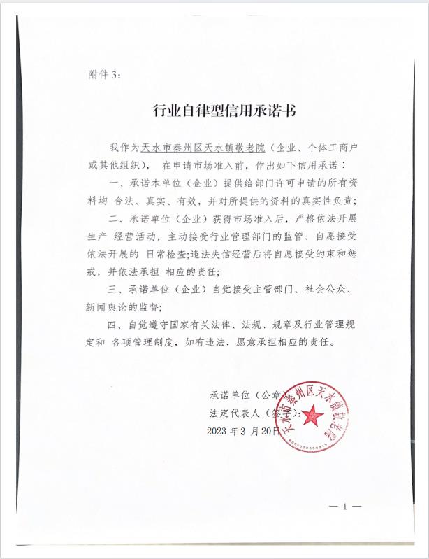 天水市企业承诺书