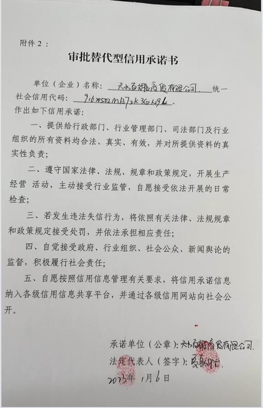 天水市企业承诺书