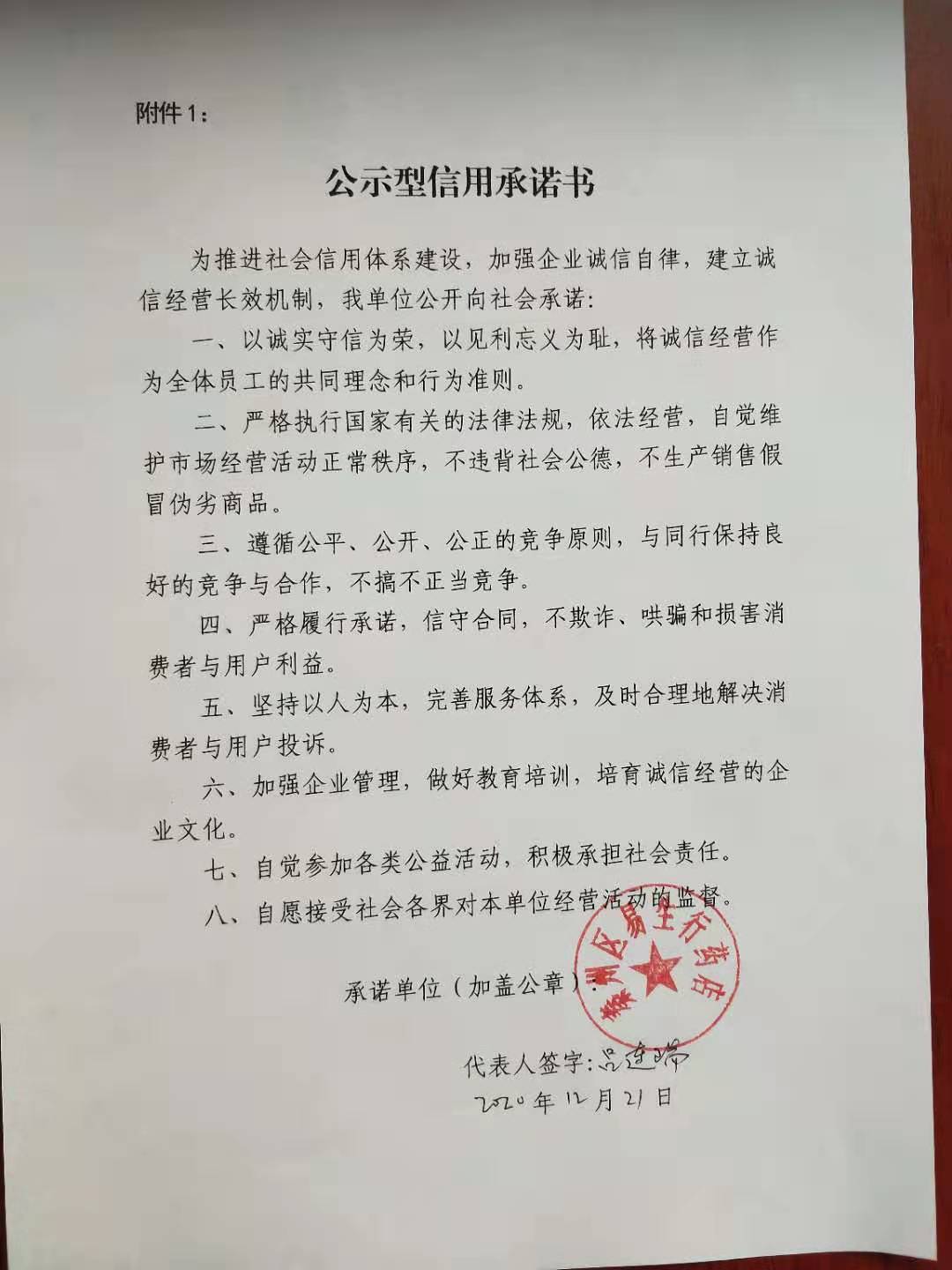 秦州区信用承诺书