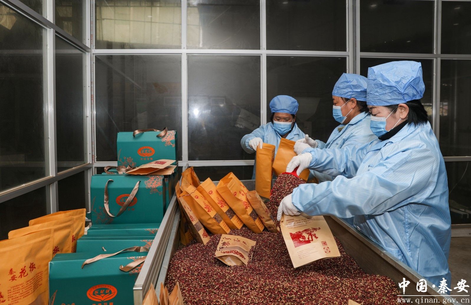 车间务工人员刘改定告诉记者:“我在这里已经干了二十几年了,自从建厂以来一直在这里干,因为厂里的效益好,我们的收入也比较好,今年订单多,开工早。我们秦安的花椒麻味足,香味浓,面向全国各地销量也就比较大。”